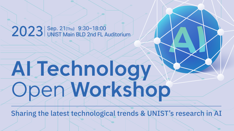 ‘인공지능기술 공개 워크숍(2023 UNIST AI Technology Open Workshop)’ 9월 21일(목) UNIST 대학본부 대강당에서 열렸다. 국·내외 인공지능 전문가와 UNIST 교수 등 총 9명이 참여해 최신 인공지능 기술 동향과 UNIST의 연구 성과를 소개하기 위해 마련된 자리다.