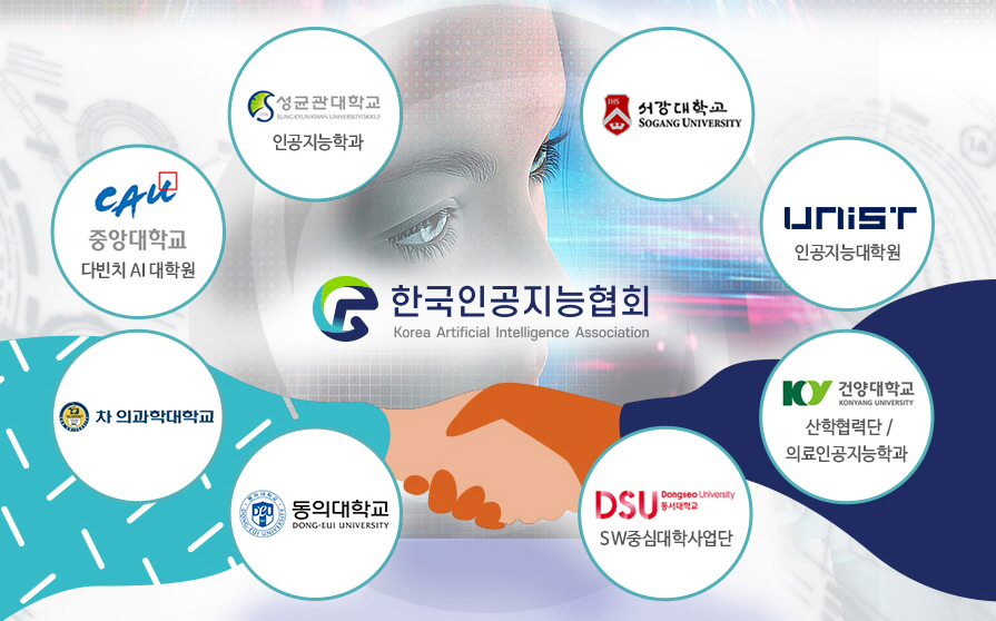 한국인공지능협회(회장 김현철)는 성균관대학교(총장 신동렬) 인공지능학과, 서강대학교(총장 심종혁), 중앙대학교(총장 박상규) 다빈치 AI대학원, UNIST(총장 이용훈) 인공지능대학원, 건양대학교(총장 이철성) 산학협력단/의료인공지능학과, 차 의과학대학교(총장 김동익), 동의대학교(총장 한수환), 동서대학교(총장 장제국) SW중심대학사업단 등 국내 인공지능학과 및 대학원이 개설된 8개의 대학과 업무협약(MOU)을 체결했다.