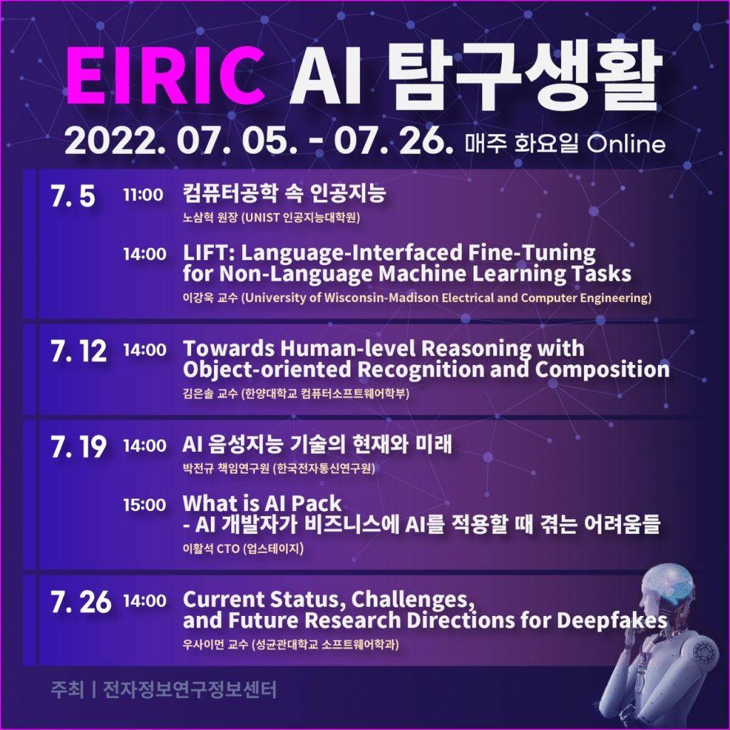 [2022.07.01] “AI 연구와 활용은 이렇게”…EIRIC, 7월 ‘AI 탐구생활’ 개최, AI타임스