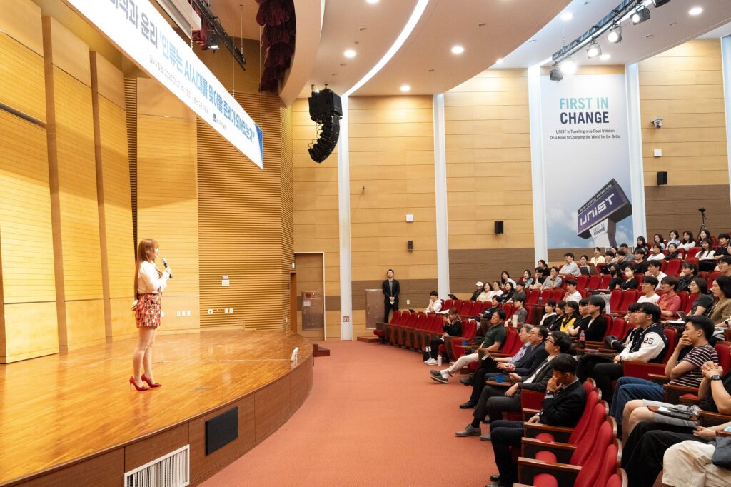 이지영 특임교수는 이날 ‘인류는 AI시대를 맞이할 준비가 되어 있는가?’를 주제로 특강을 진행하며, UNIST 구성원들과 AI 의식·윤리 문제를 논의했다.