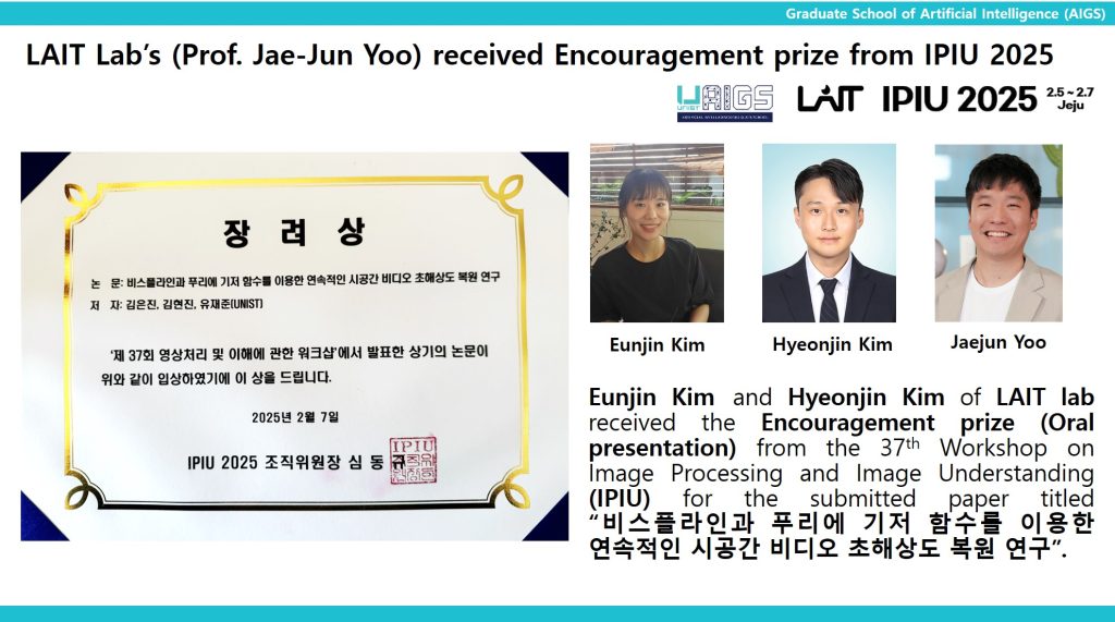 LAIT Lab’s(Prof. Jaejun Yoo) received Encouragement prize from IPIU 2025 2025 | 02.13 Download 2025.02.13LAIT-LabsProf.-Jaejun-Yoo-received-Encouragement-prize-from-IPIU-2025.jpg