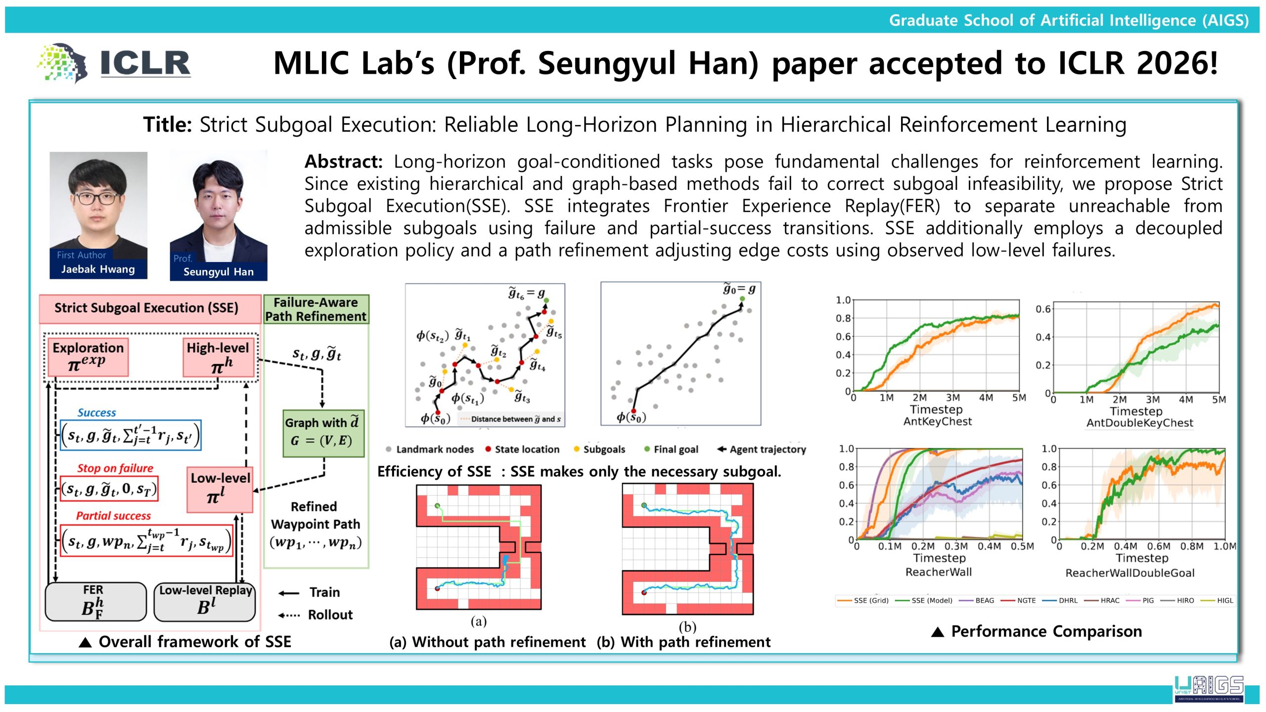 MLIC Lab’s (Prof. Seungyul Han) paper accepted to ICLR 2026!_Strict Subgoal Execution: Reliable Long-Horizon Planning in Hierarchical Reinforcement Learning 2026 | 03.17 Download AIGS홍보자료_황재박_SSE-scaled.jpg