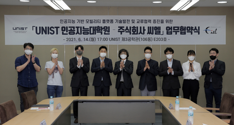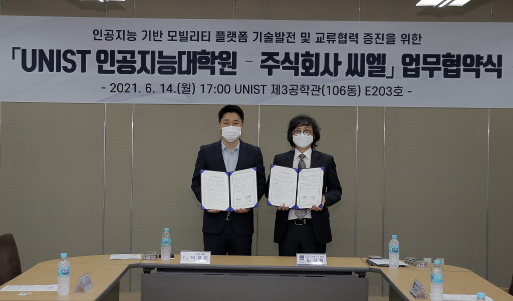 UNIST 인공지능대학원과 ㈜씨엘은 14일(월) 오후 5시 제3공학관에서 AI 기반 모빌리티 온디맨드(MOD) 기술발전 및 교류협력 증진을 위한 업무협약을 체결했다.