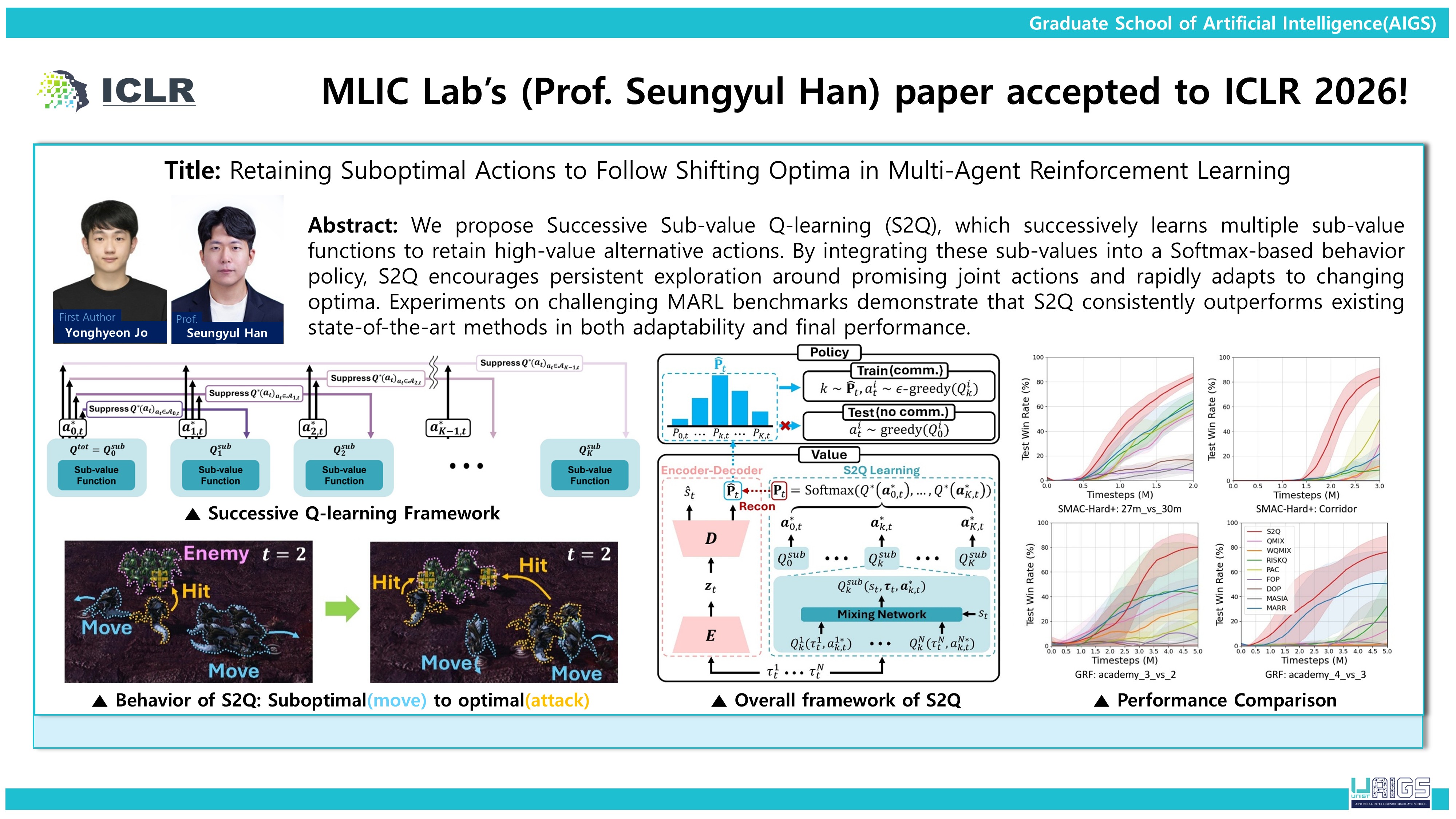 MLIC Lab’s (Prof. Seungyul Han) paper accepted to ICLR 2026!_Retaining Suboptimal Actions to Follow Shifting Optima in Multi-Agent Reinforcement Learning